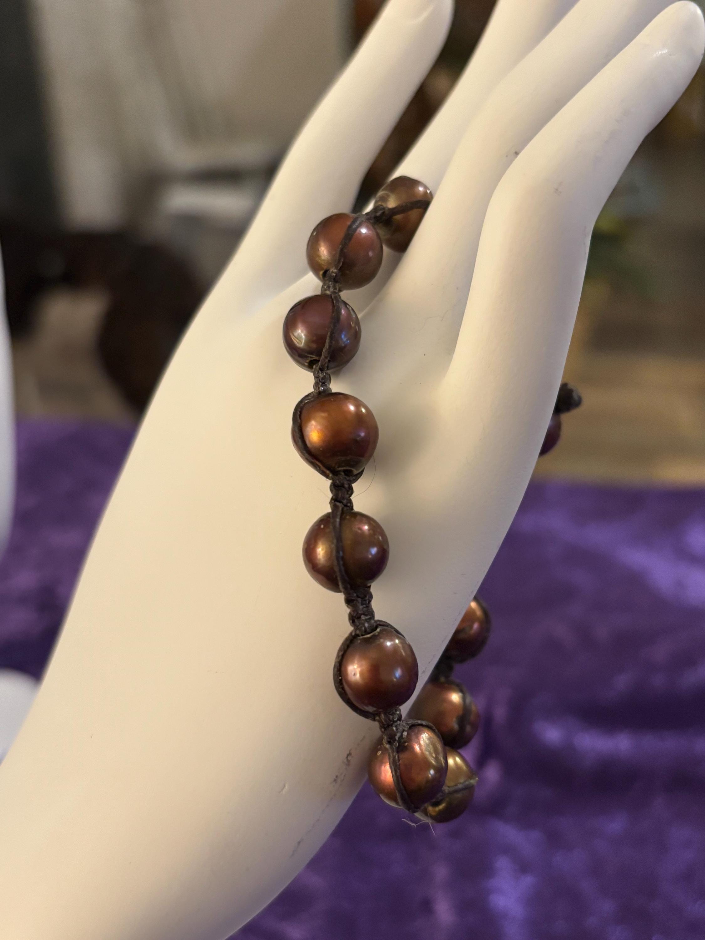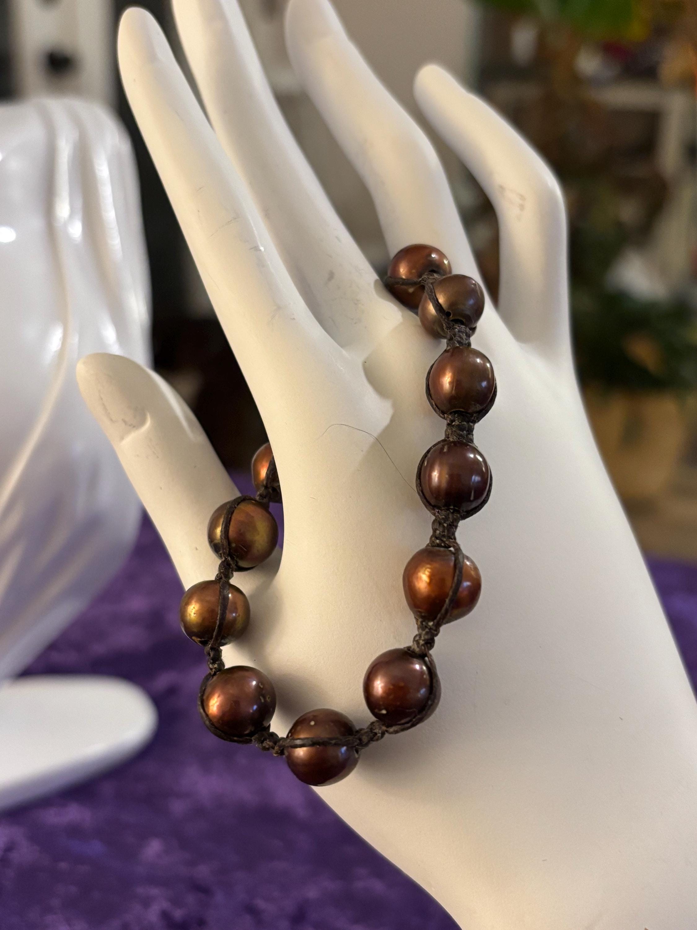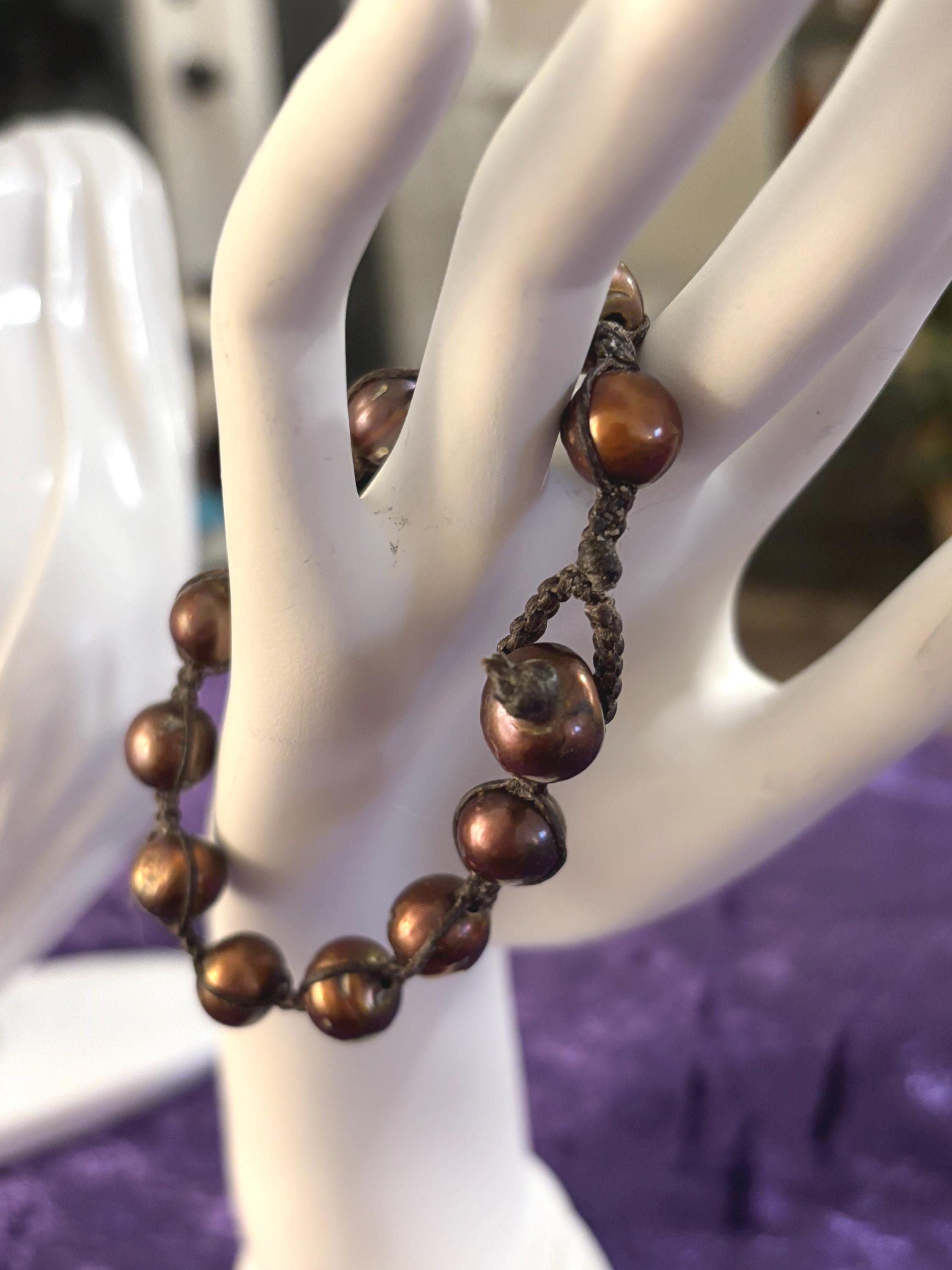 This listing is for a bracelet made of corded black chain with shiny brown beads. A little boho, but also just a cool looking bracelet. Fun and different! Great piece to own!