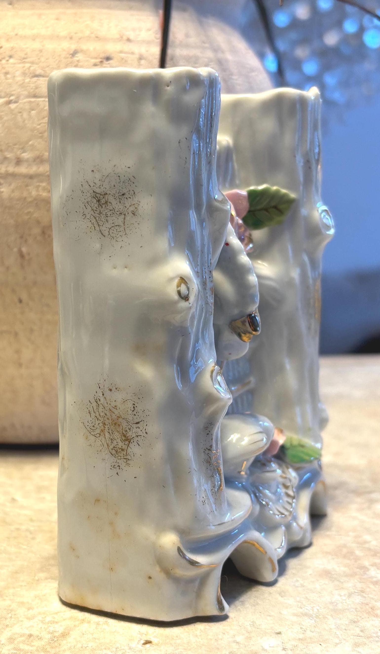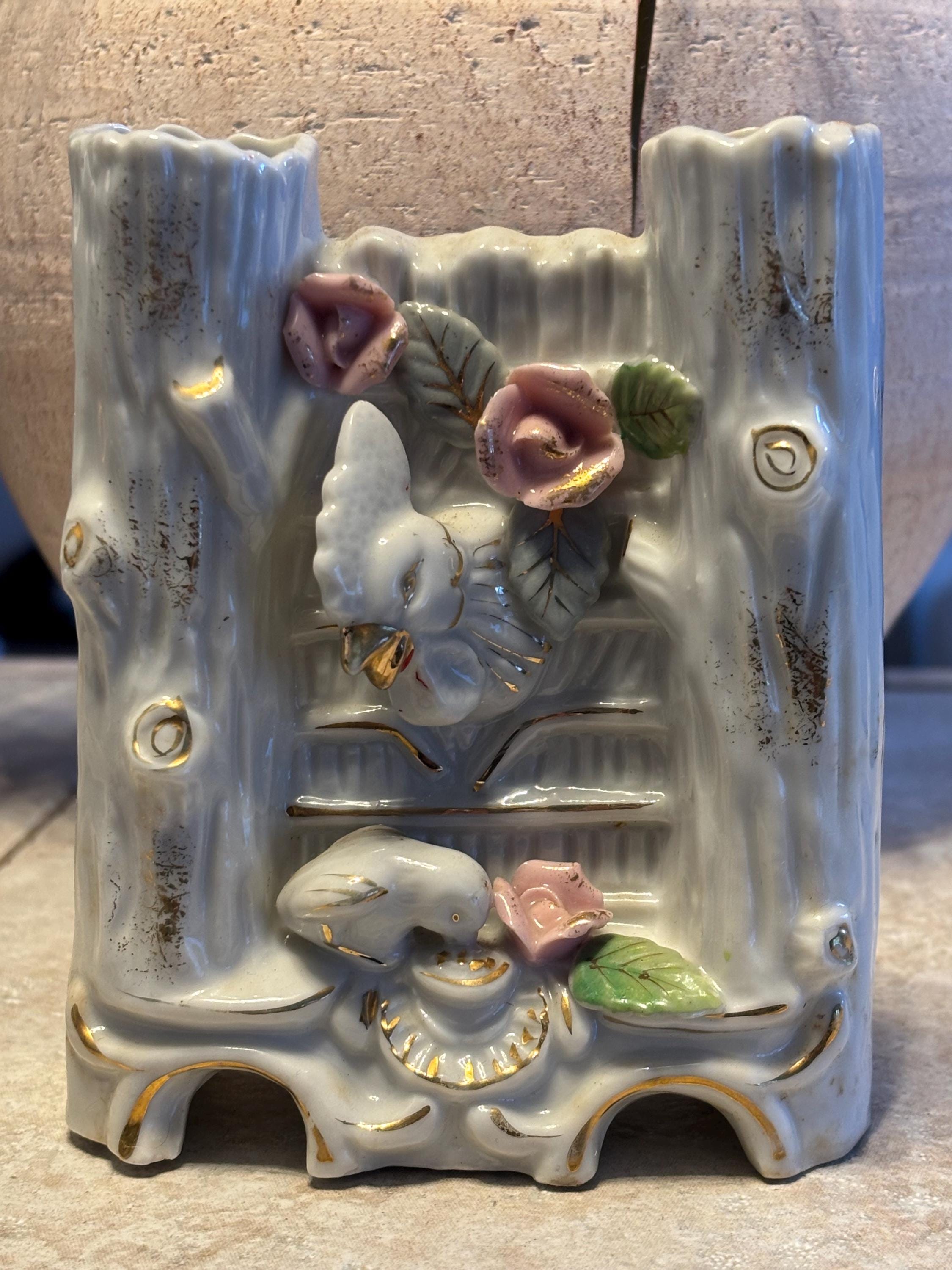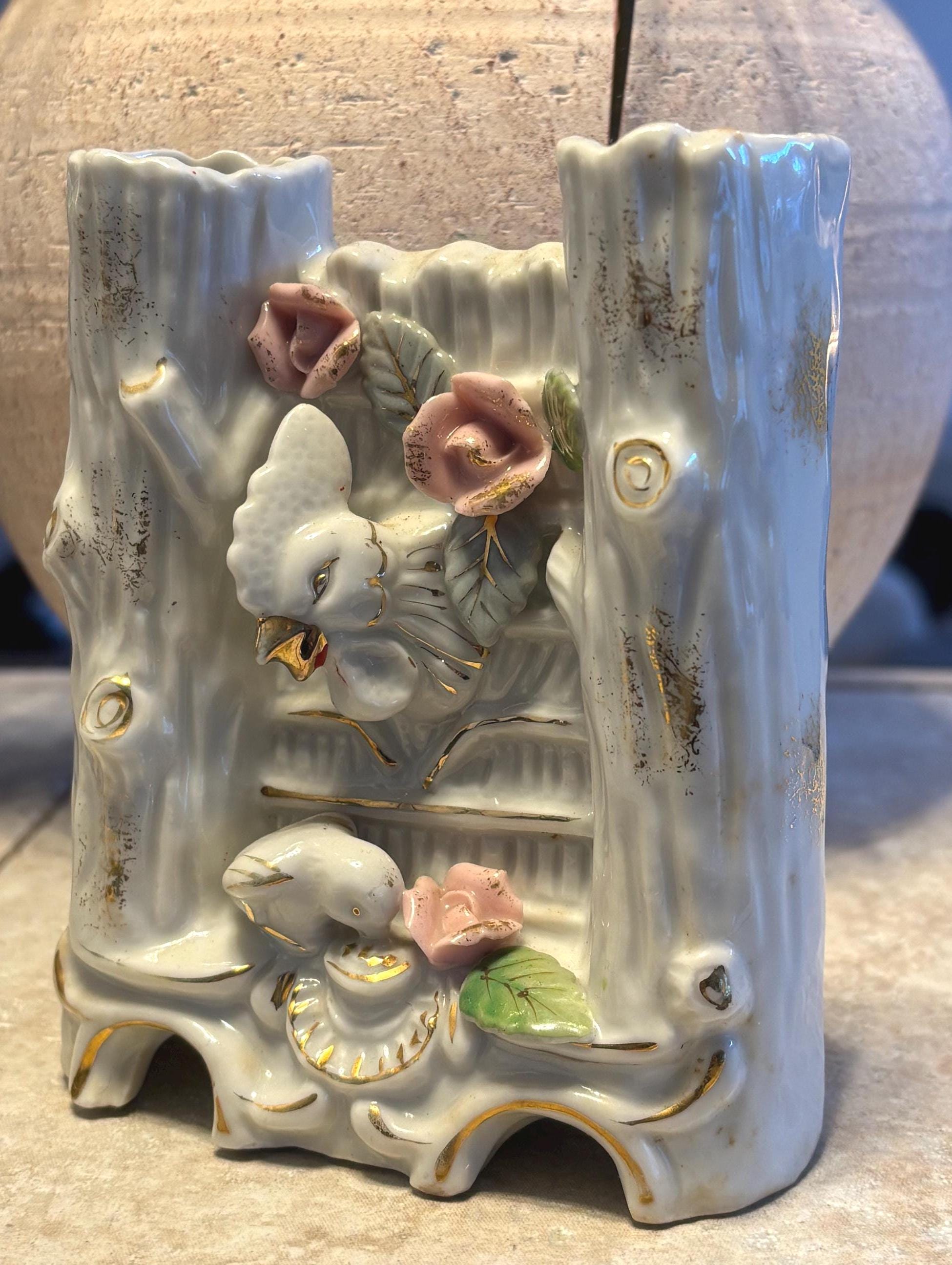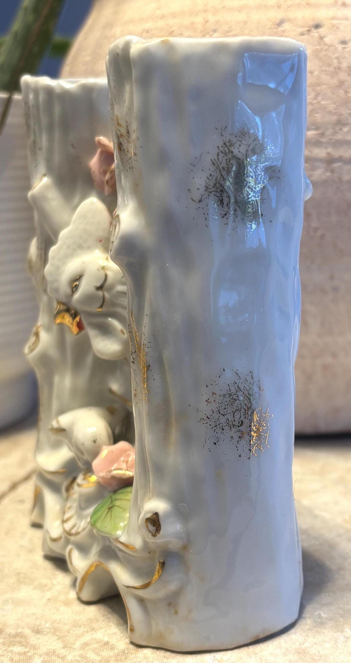 Kitschy Vintage Tree Trunk Rooster, Bird, and Floral Double Vase