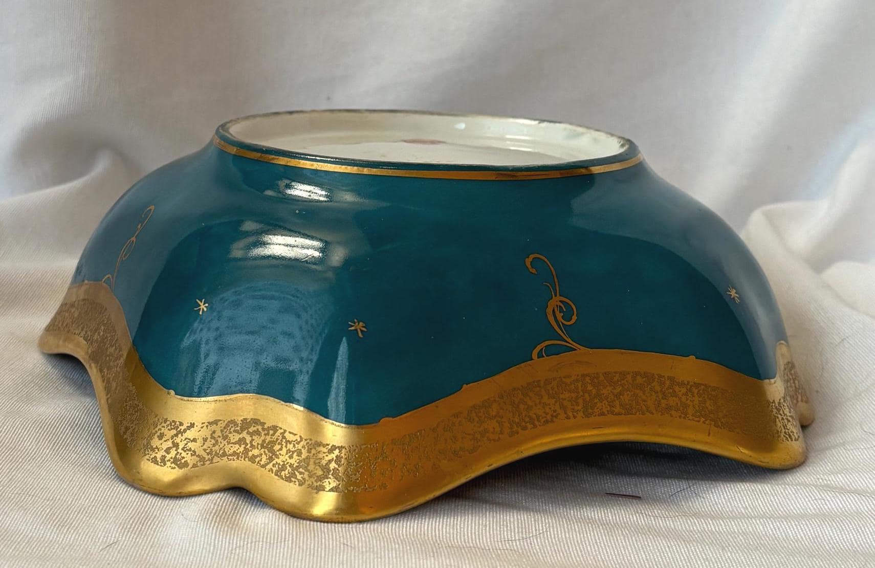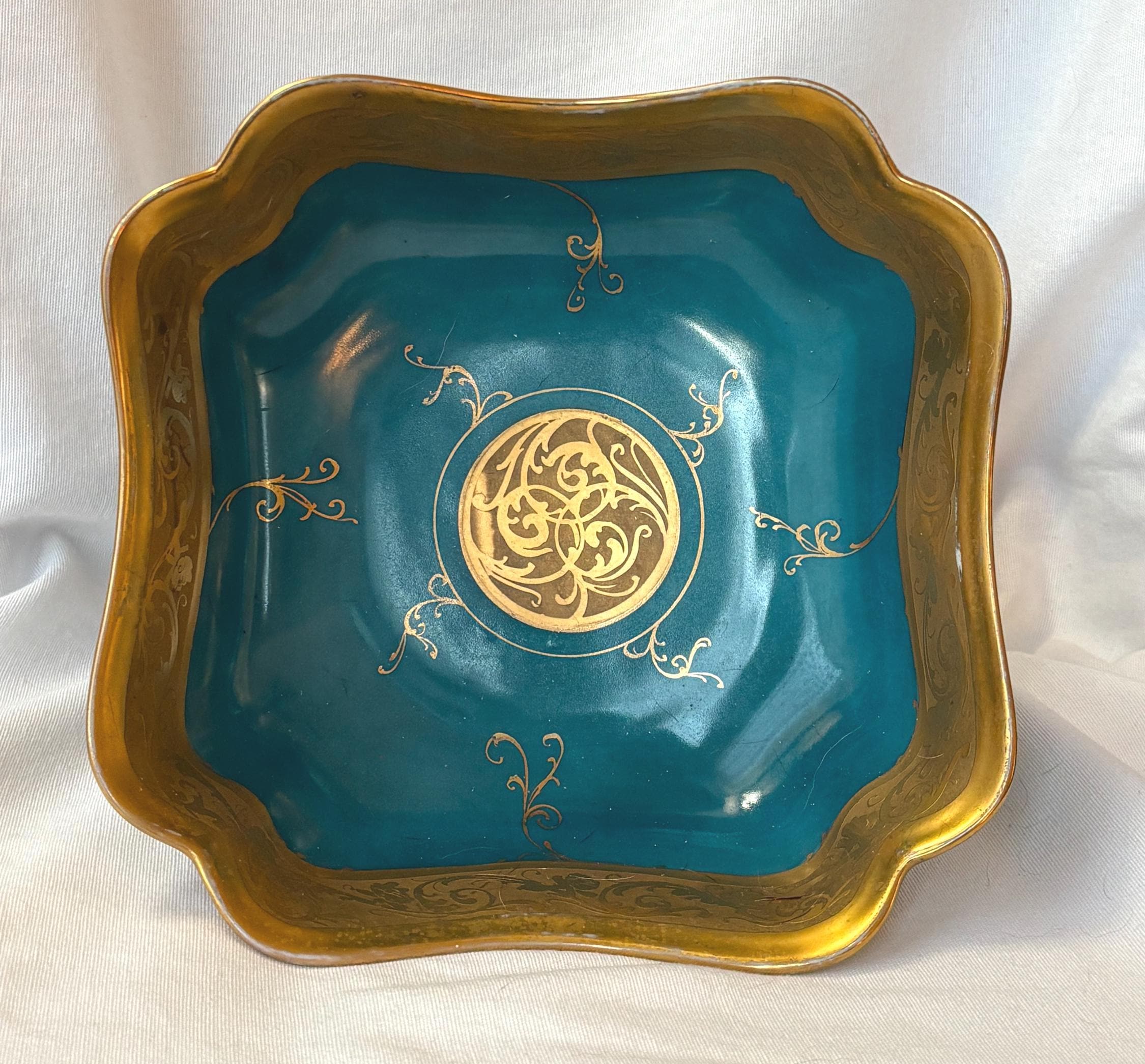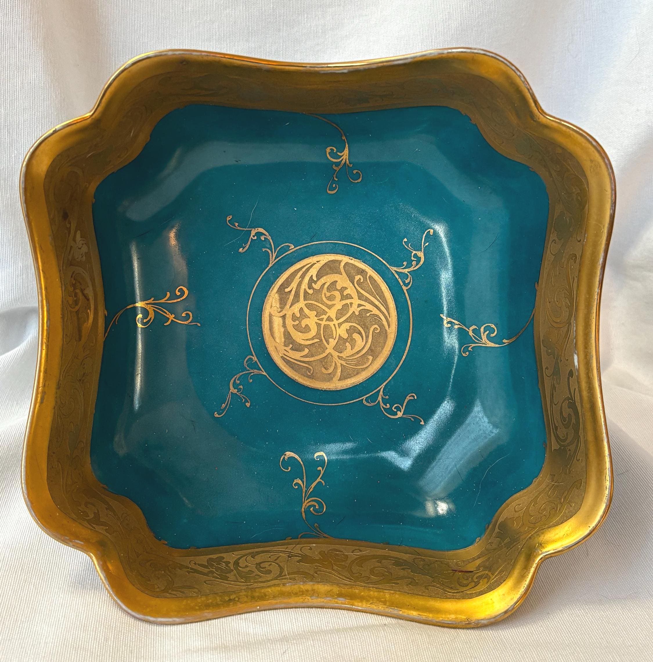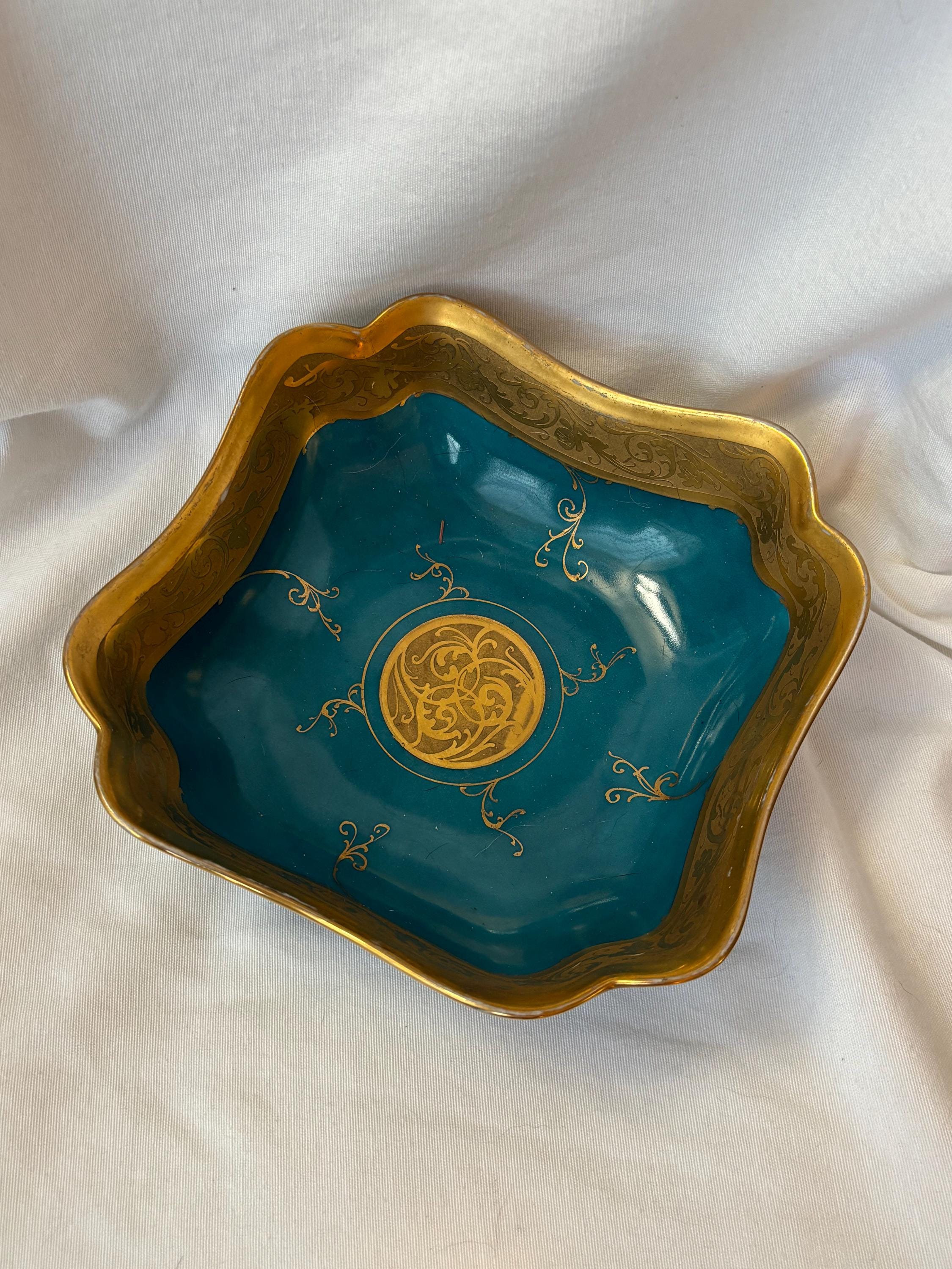 Beautiful art nouveau Julius H Brauer hand painted Octogonal shaped bowl. It features gold accents throughout and is absolutely gorgeous. There is some loss of paint here and there- particularly along the rim. In good condition- especially for its age. A gorgeous piece of fine china to add to a collection. Wear is consistent with age and use.