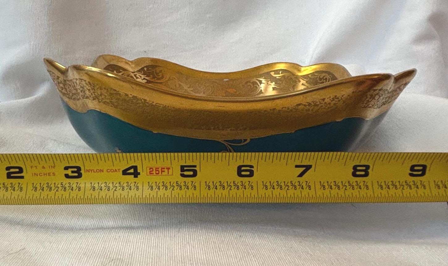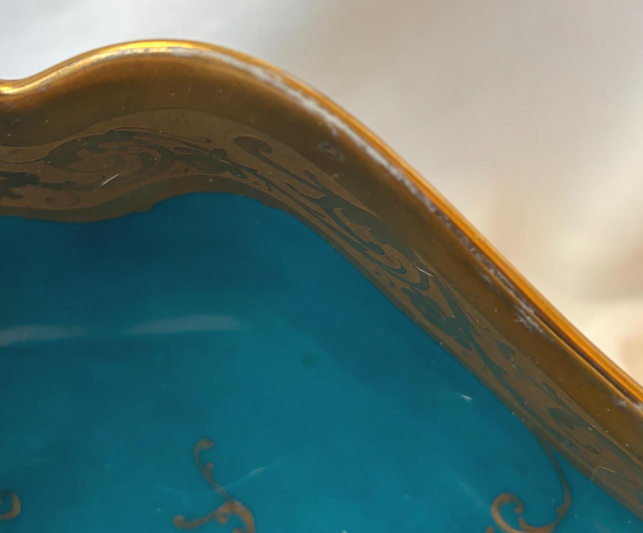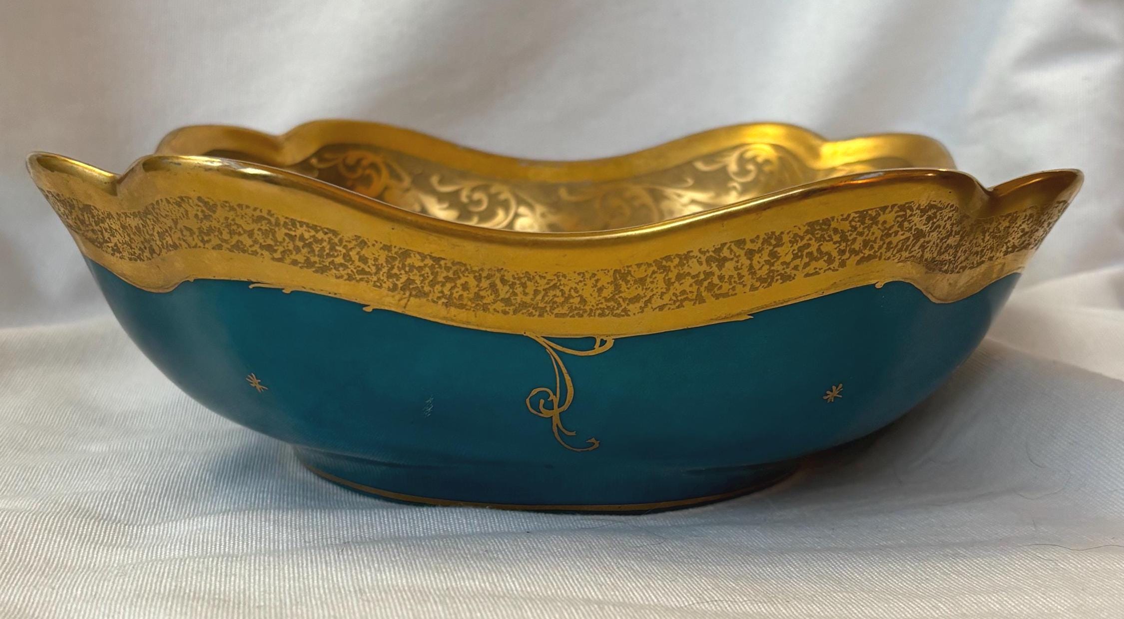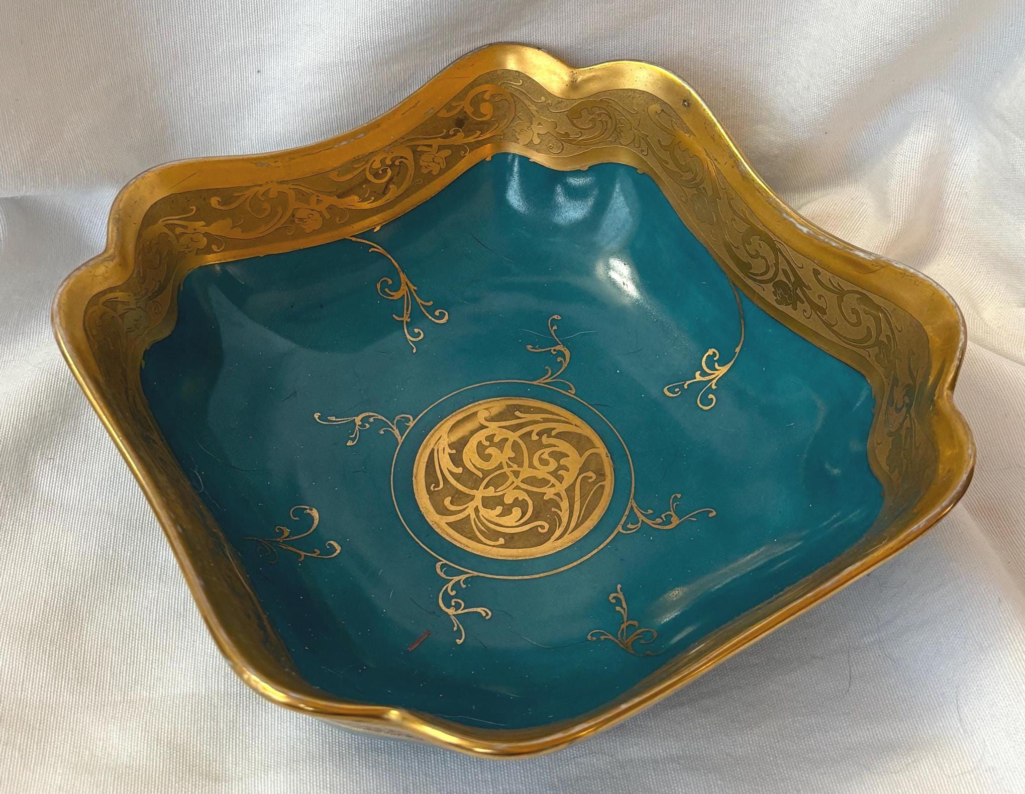 Beautiful art nouveau Julius H Brauer hand painted Octogonal shaped bowl. It features gold accents throughout and is absolutely gorgeous. There is some loss of paint here and there- particularly along the rim. In good condition- especially for its age. A gorgeous piece of fine china to add to a collection. Wear is consistent with age and use.