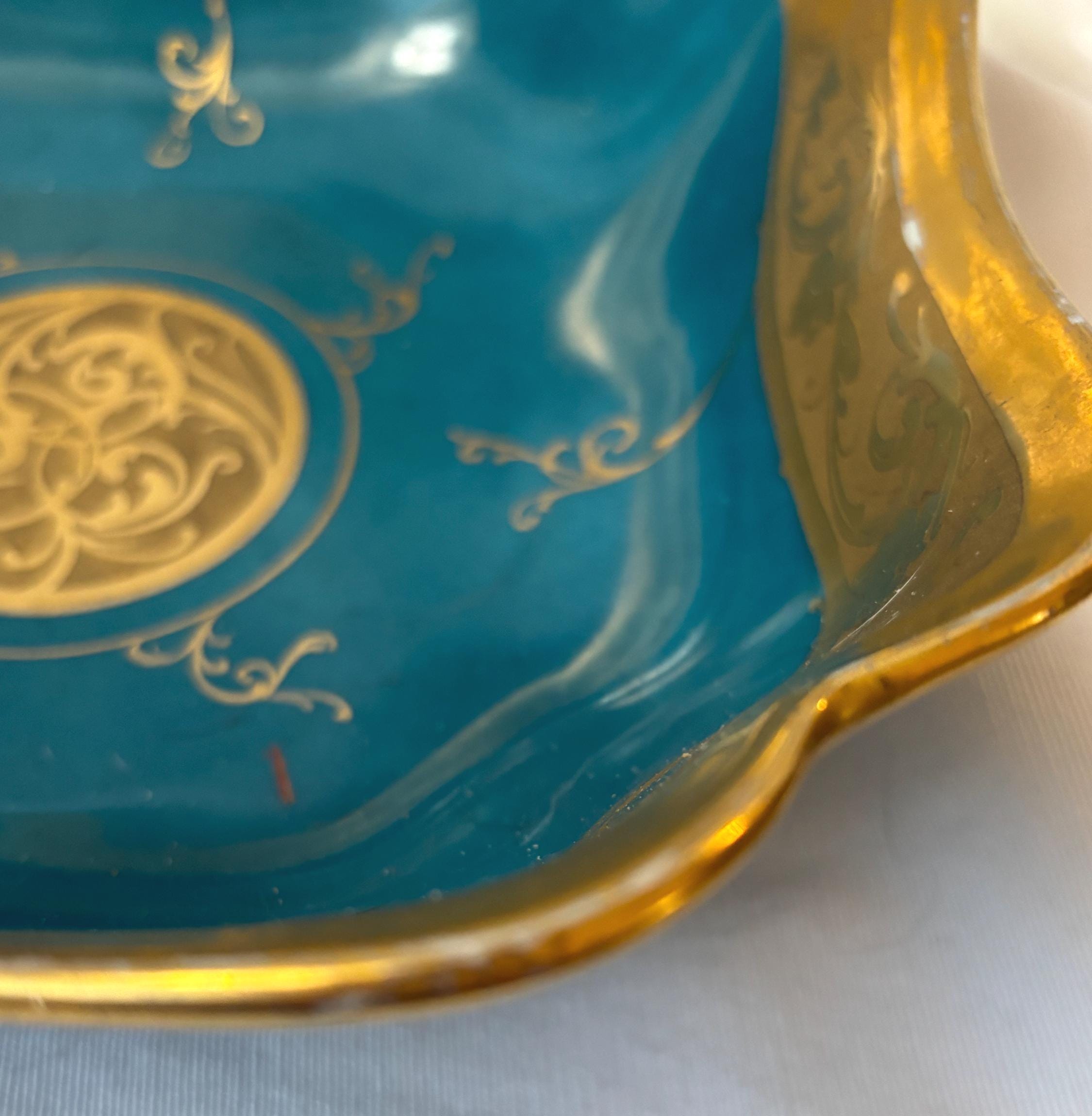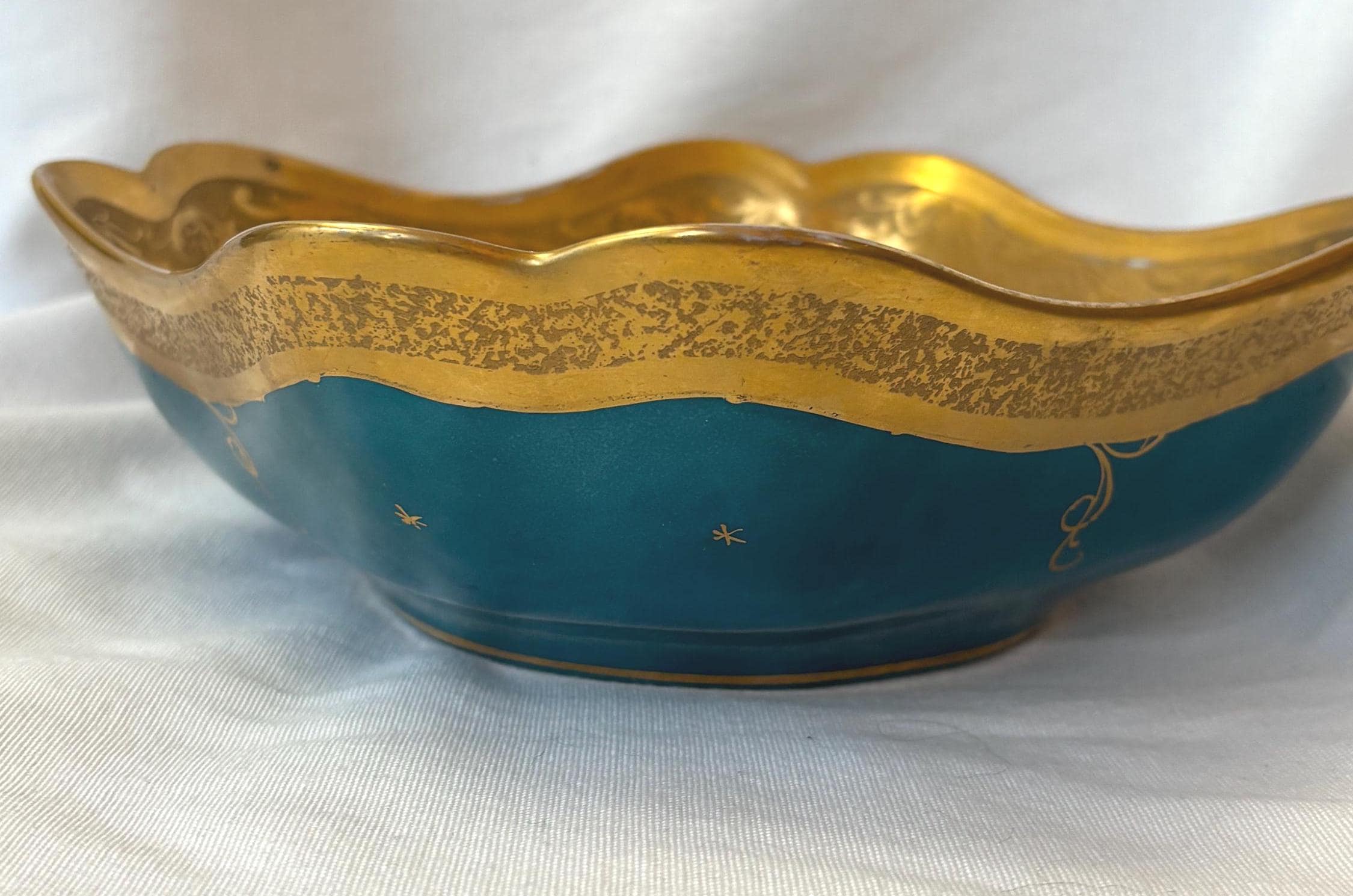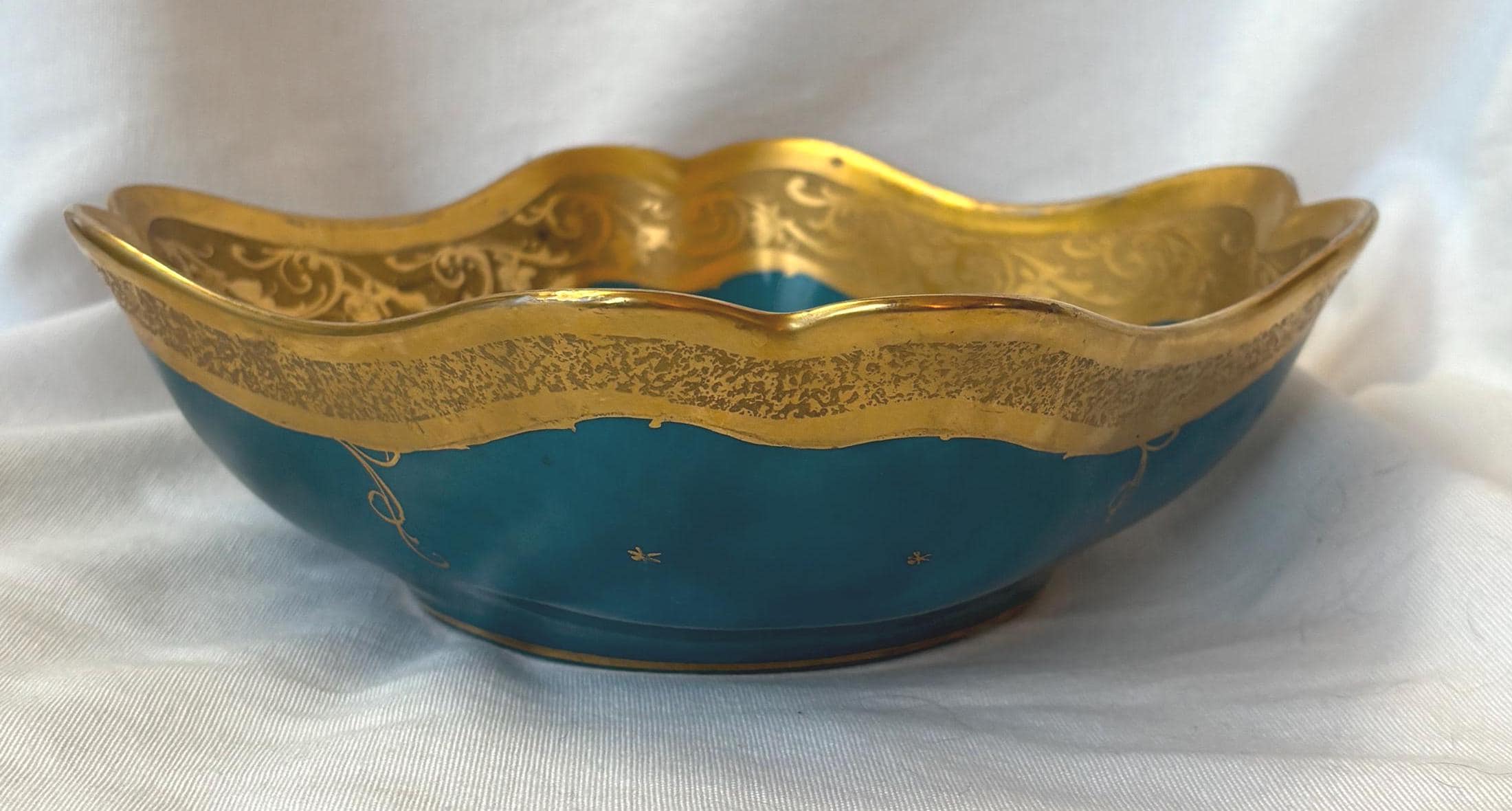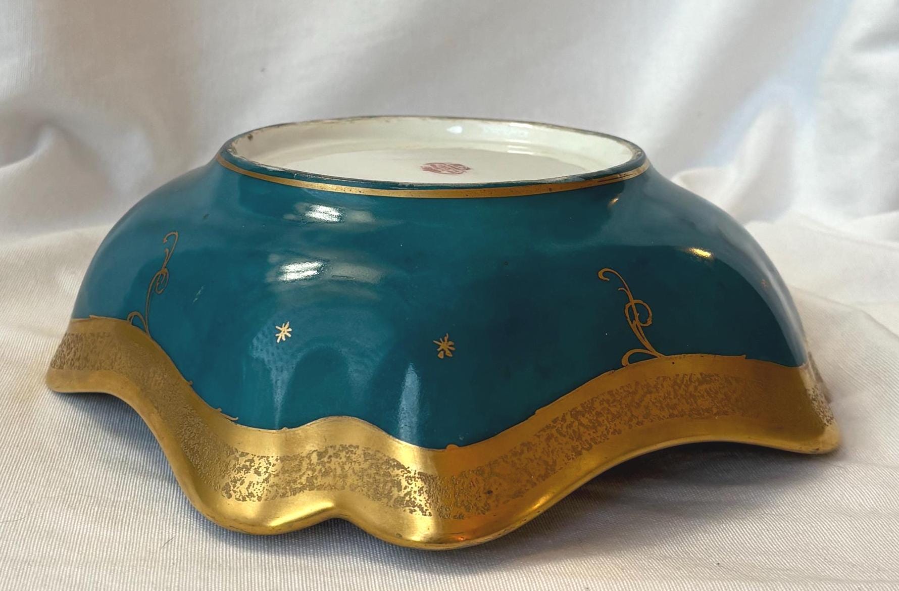 Beautiful art nouveau Julius H Brauer hand painted Octogonal shaped bowl. It features gold accents throughout and is absolutely gorgeous. There is some loss of paint here and there- particularly along the rim. In good condition- especially for its age. A gorgeous piece of fine china to add to a collection. Wear is consistent with age and use.